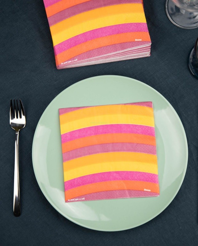 Serwetki stołowe Renova Mallorca 33x33cm 20szt to propozycja dla osób, które lubią stół pełen koloru, światła i pozytywnej energii. Ten wzór od razu przyciąga uwagę – szerokie, falujące pasy w ciepłych, intensywnych barwach nadają aranżacji lekkość i wakacyjny charakter. To serwetki, które świetnie odnajdują się podczas letnich spotkań, śniadań na tarasie, kolacji w ogrodzie, brunchów z przyjaciółmi czy rodzinnych posiłków w swobodnym stylu. Są dekoracyjne, wyraziste i nowoczesne, a jednocześnie na tyle uniwersalne, że mogą stać się mocnym, ale bardzo przyjemnym akcentem stołu.
