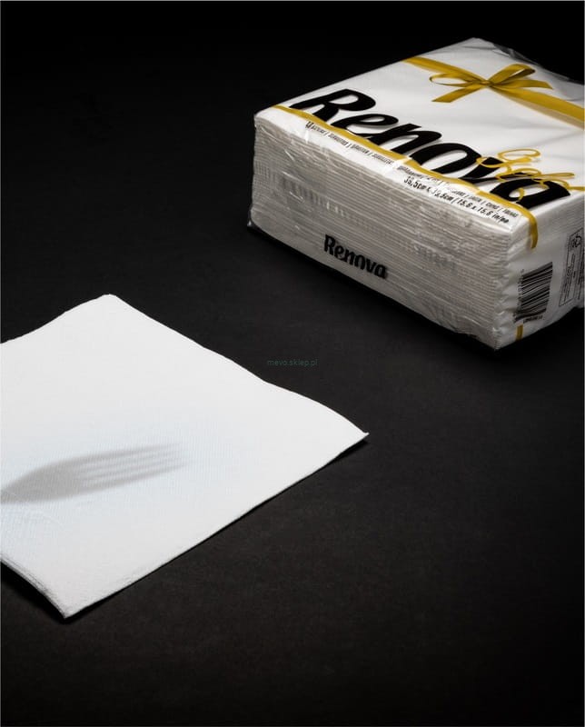 Wysokiej jakości białe serwetki papierowe z serii Renova GOLD, specjalna tekstura, extra rozmiar, wyjątkowo miękkie i chłonne. Kolorowe serwetki na stół z serii Renova Gold to niezbędny detal na Twoim przyjęciu.