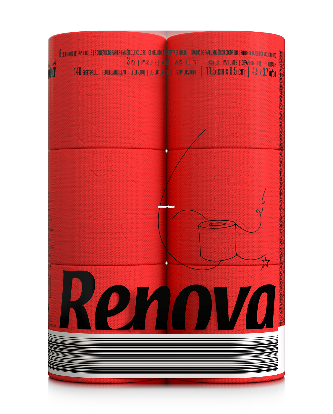 6x Czerwony papier toaletowy Renova 6 rolek + gratis