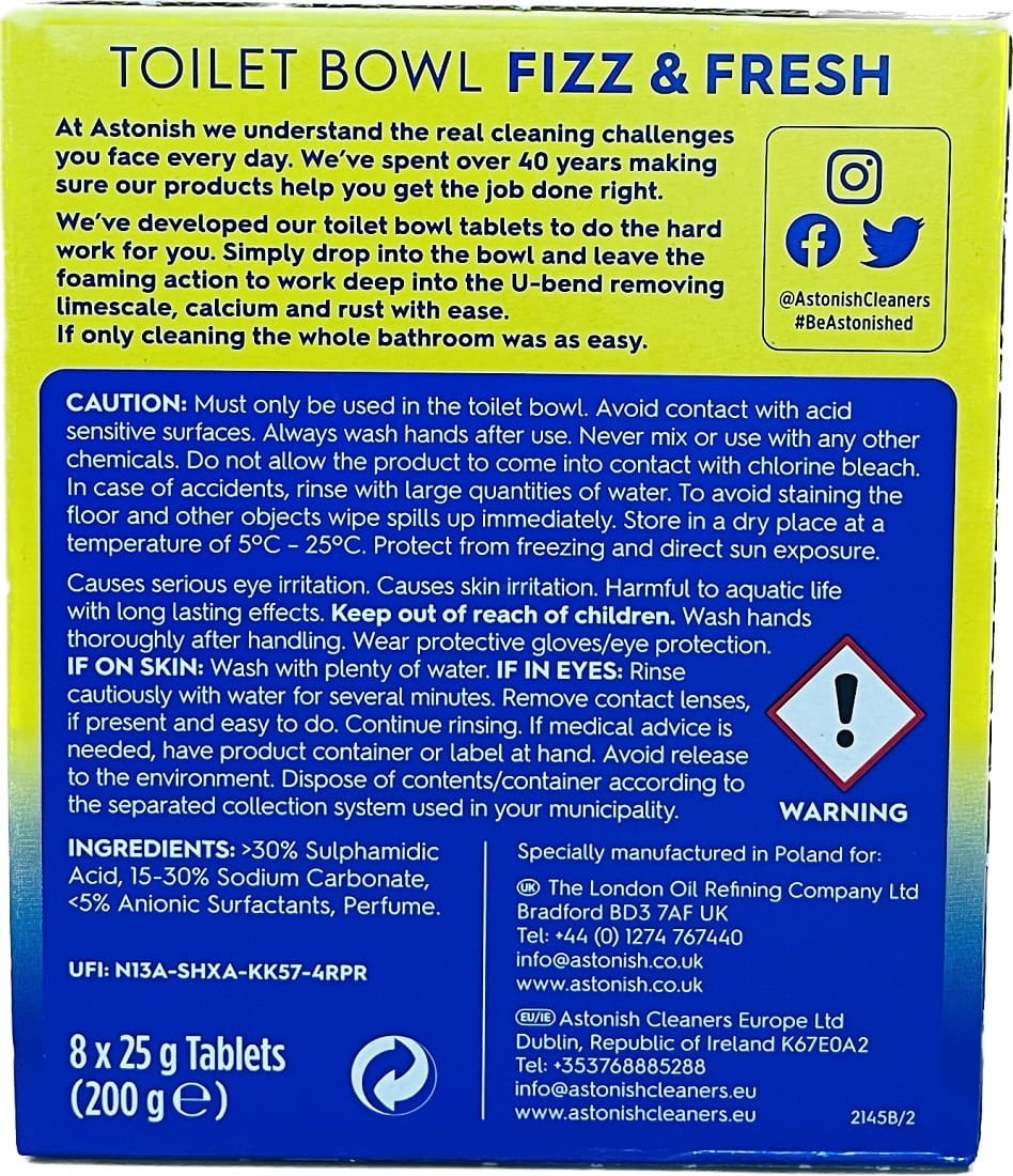 Astonish Fizz&Fresh Lemon Splash to tabletki do czyszczenia muszli klozetowej.