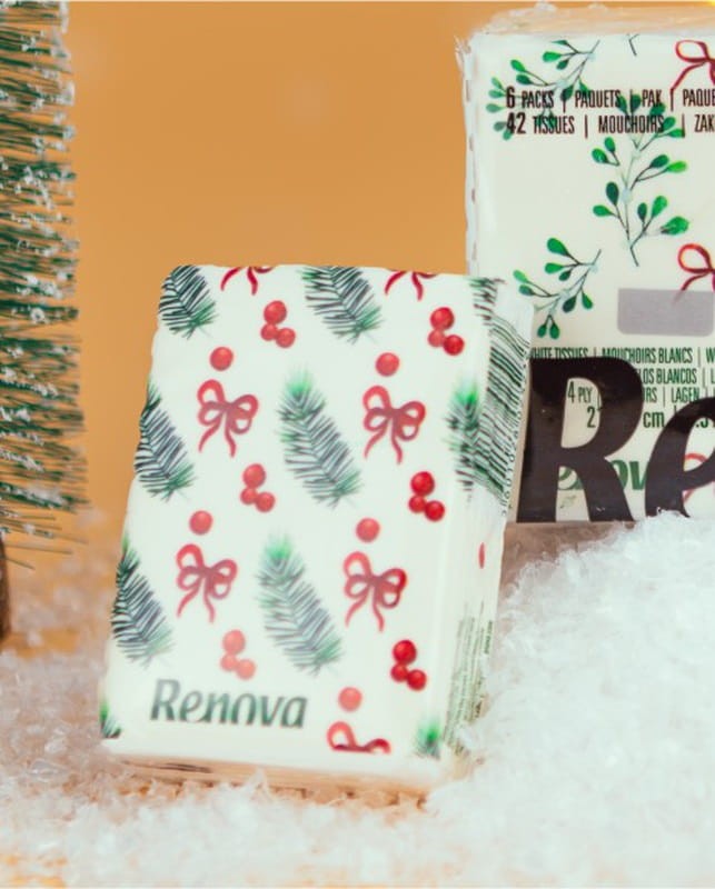 Delikatne chusteczki wyciągane do twarzy inspirowane Bożym Narodzeniem, aby przypominały nam o tym, co naprawdę najważniejsze: Nadzieja, Pokój, Miłość i Radość. Chusteczki higieniczne z białej bibuły, wyjątkowo miękkie i wytrzymałe, pakowane w pojedyncze opakowania z kolorowymi i limitowanymi ilustracjami związanymi ze Świętami.