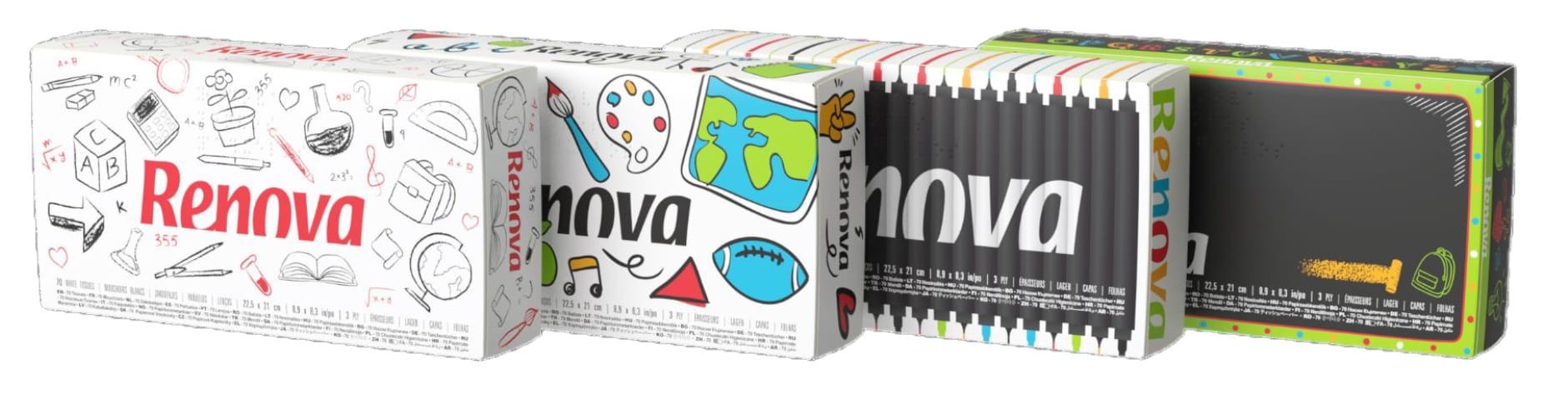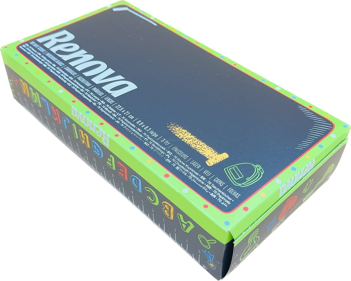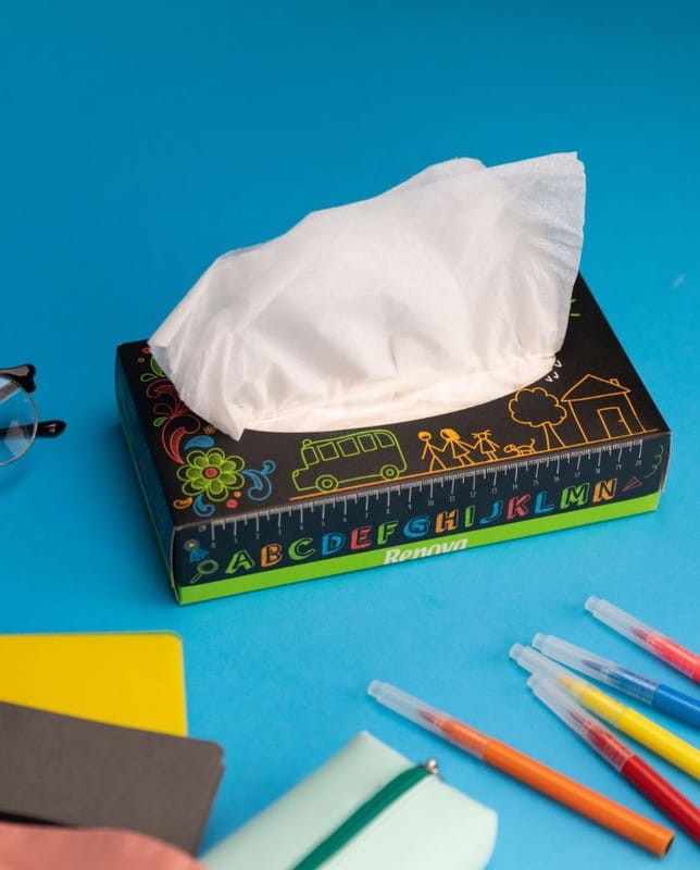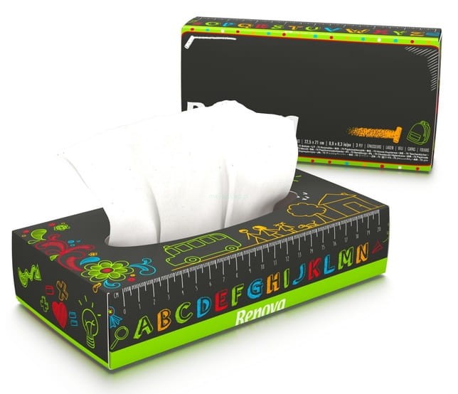Czas szkolny jest istotną kwestią dla dzieci w każdym wieku. Żyją we własnym świecie, na odpowiednim etapie swojego życia. Renova Facial Tissues School design Edition sprawi, że powrót do szkoły będzie przyjemniejszy! Niezbędne na biurku każdego ucznia.
