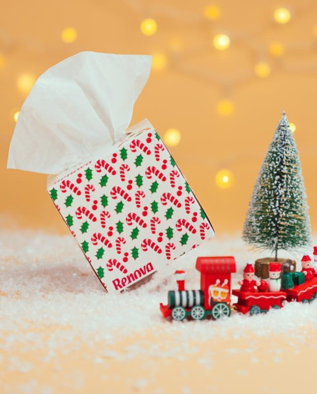 Chusteczki do twarzy inspirowane świętami Bożego Narodzenia, które pomogą Ci udekorować Twój dom lub biuro. Piękny pomysł na prezent. Wesołych Świąt!