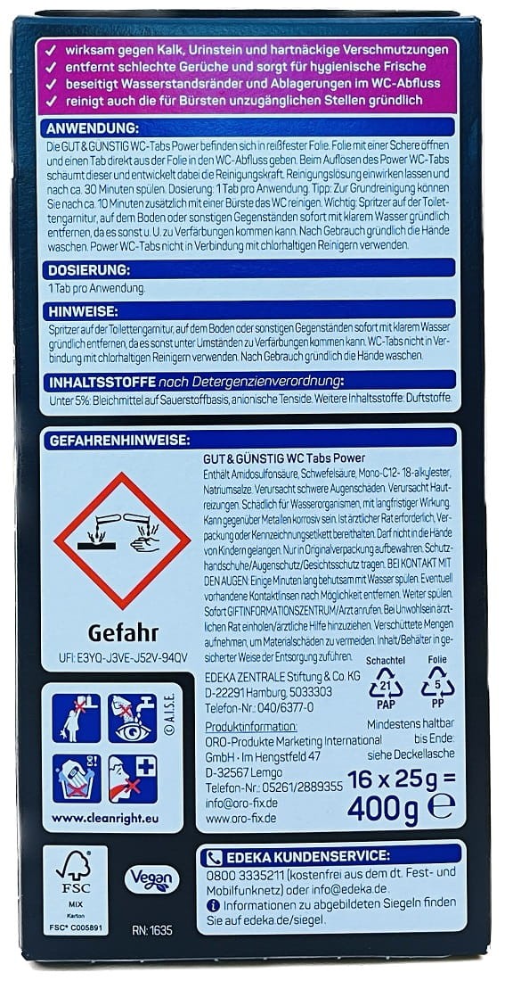 Tabletki o zapachu cytrynowym. Idealnie nadają się do oczyszczania muszli klozetowych, pisuarów i rur odpływowych. Usuwają zarazki, bakterie, oraz osady powstałe w muszli poniżej poziomu wody (kamień, wapń, ciemne naloty). Zapewniają higieniczną czystość także w miejscach niedostępnych dla szczotki. Tworząca się w czasie rozpuszczania tabletki piana wzmaga czyszczące działanie produktu.