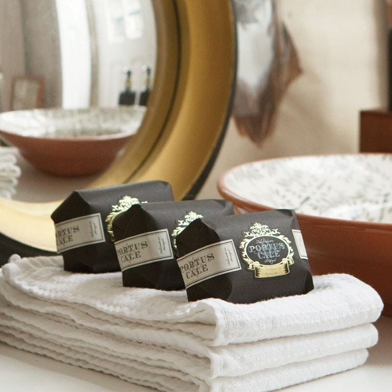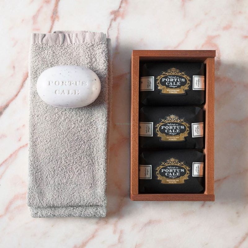 Zestaw 3 pachnących mydeł Portus Cale Ruby Red na prezent dla bliskich lub Twojego domu. Każde mydło jest ręcznie pieczętowane i ręcznie owijane przez rzemieślników z Portugalii w czarny matowy papier ze złotymi arabeskami. Mydła wykonane są w 100% na bazie roślinnej, posiadają soczysty, owocowy zapach i wytwarzają kremową, pachnącą pianę. To wszystko zapakowane jest w luksusowe pudełko, które można ponownie wykorzystać do przechowywania małych przedmiotów, takich jak zdjęcia, materiały do szycia i inne drobne przedmioty.
