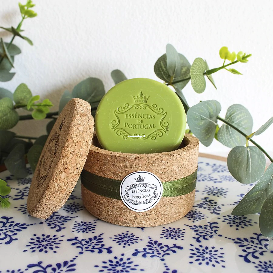 Naturalne portugalskie mydło o zapachu eukaliptusowym w ekologiczne korkowe pudełko. Surowiec opakowania 'korek' to słynny produkt z Portugalii, który nie tylko służy do zamykania najlepszych szampanów na świecie, ale też zabezpiecza i utrzymuje naturalny zapach mydeł Essencias de Portugal. Stylowego opakowania na pewno nie zamkniesz w szafce — będzie ozdabiać przestrzeń Twojej łazienki. Po zużyciu mydła opakowanie przyda się do przechowywania cennych drobiazgów.