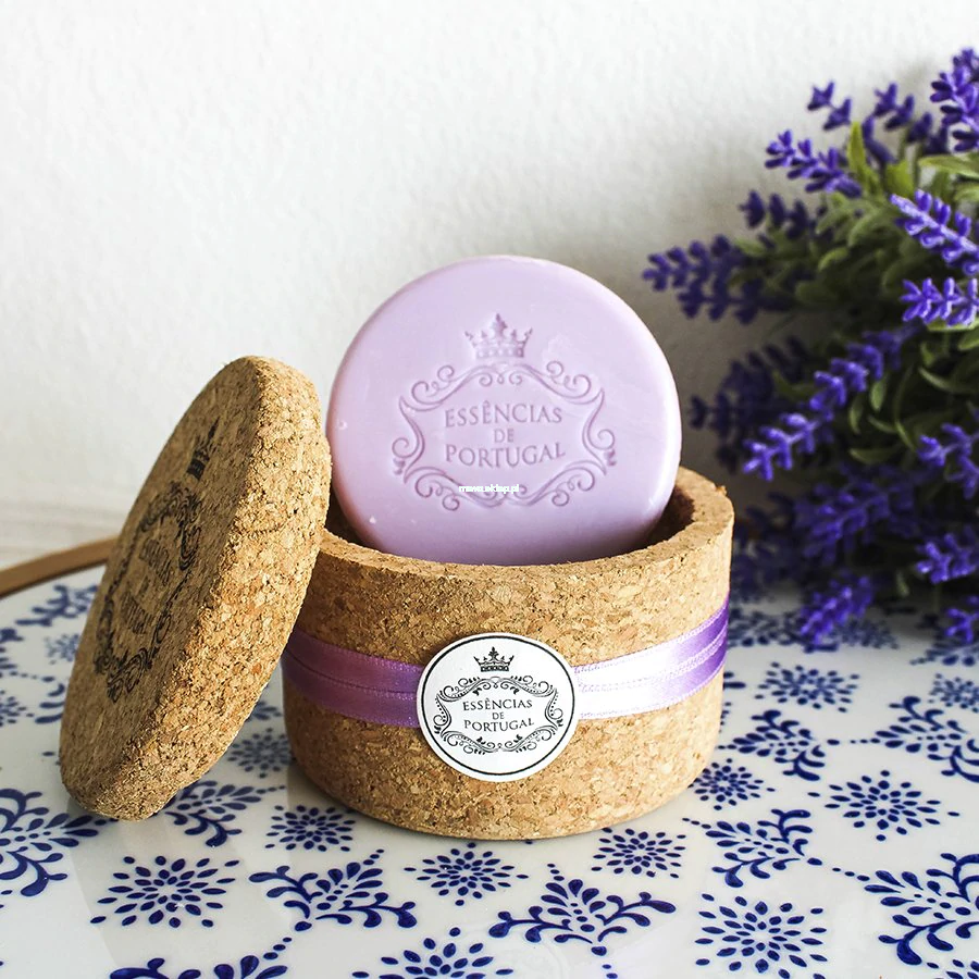 Naturalne portugalskie mydło o zapachu lawendy zapakowane w ekologiczne korkowe pudełko. Surowiec opakowania 'korek' to słynny produkt z Portugalii, który nie tylko służy do zamykania najlepszych szampanów na świecie, ale też zabezpiecza i utrzymuje naturalny zapach mydeł Essencias de Portugal. Stylowego opakowania na pewno nie zamkniesz w szafce — będzie ozdabiać przestrzeń Twojej łazienki. Po zużyciu mydła opakowanie przyda się do przechowywania cennych drobiazgów.