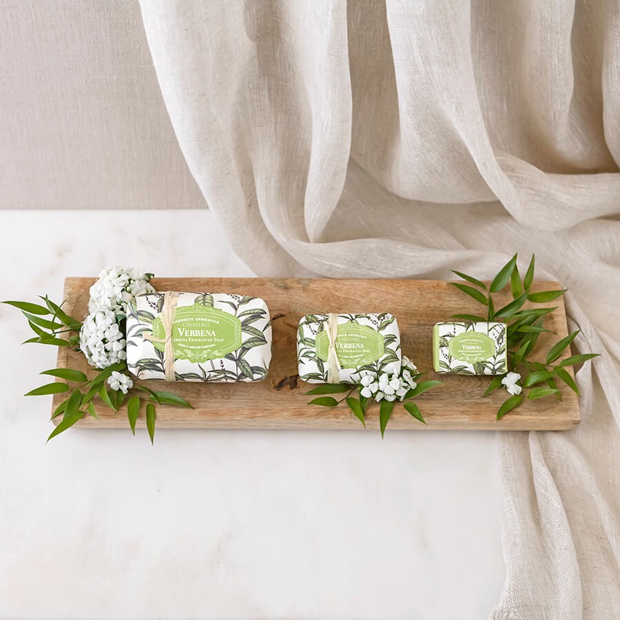 Pachnące mydło Castelbel werbena na prezent dla bliskich lub Twojego domu. Każde mydło jest ręcznie pieczętowane i ręcznie owijane przez rzemieślników z Portugalii w papier ozdobiony ilustracjami. Mydło wykonane jest w 100% na bazie roślinnej, pachnie orzeźwiającym aromatem werbeny oraz posiada kremową, pachnącą pianę. To wszystko zapakowane jest w luksusowe opakowanie papierowe.