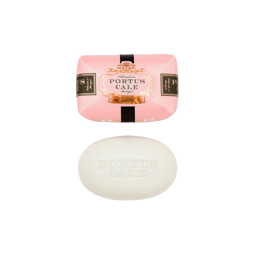 Pachnące mydło Portus Cale Rosé Blush na prezent dla bliskich lub Twojego domu. Każde mydło jest ręcznie pieczętowane i ręcznie owijane przez rzemieślników z Portugalii w różowy papier z różowymi i czarnymi akcentami. Mydło wykonane jest w 100% na bazie roślinnej, posiada słodki, kwiatowy zapach i wytwarza kremową, pachnącą pianę. To wszystko zapakowane jest w luksusowe opakowanie papierowe.