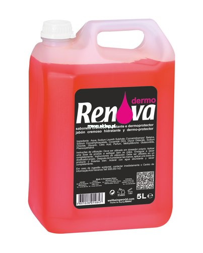 Luksusowe, kremowe, miękkie mydło do rąk Renova DERMO SOAP, czerwone i lekko pachnące. Delikatnie myje ręce.