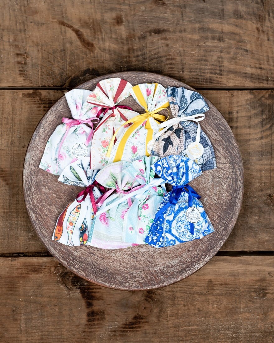 Urocze odświeżacze powietrza z woreczkami wykonanymi z typowo portugalskiej tkaniny, szytymi ręcznie przez lokalne szwaczki. Oferują liczne wzory identyfikujące różne regiony Portugalii, w tym Azory i Maderę. Są specjalnie przygotowane mydełka do wchłaniania zapachów, nadając Twojemu domowi zapach przez wiele miesięcy.