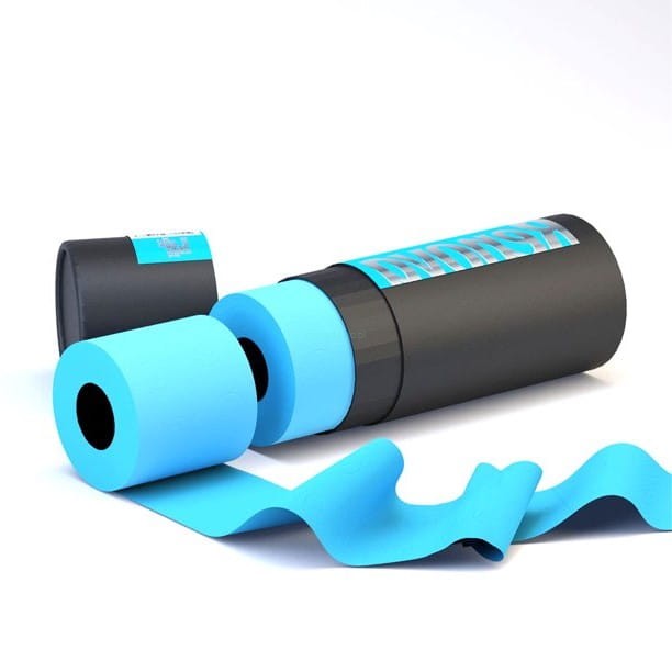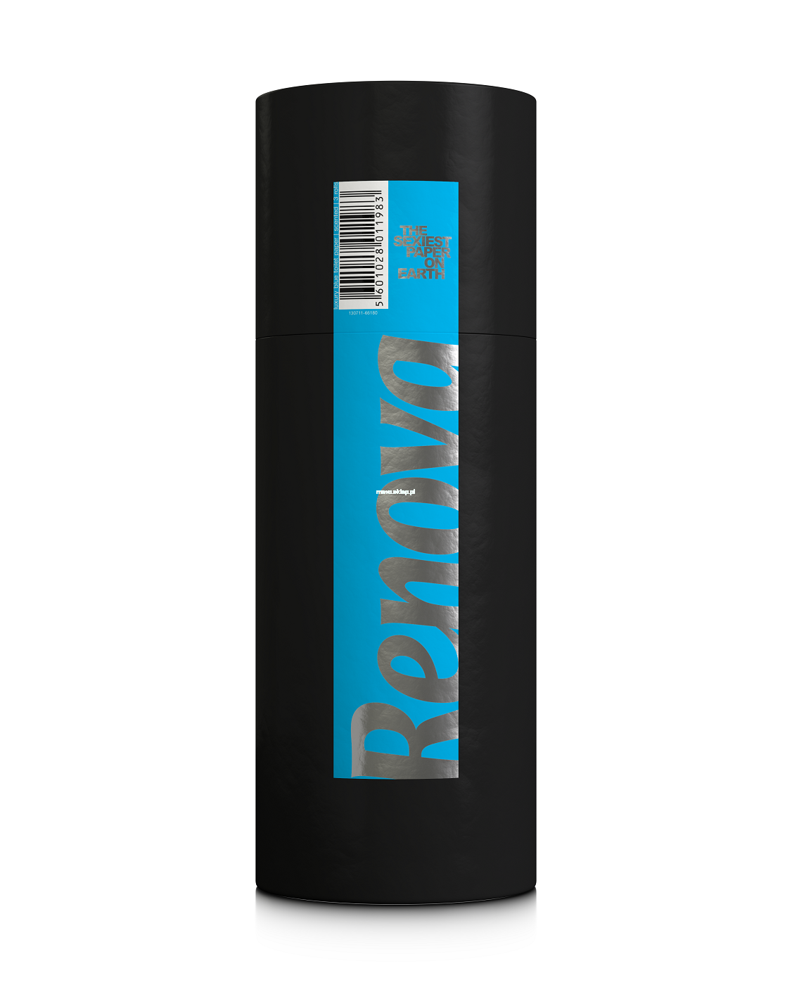 Turkusowo-niebieski niczym malediwskie atole, papier Renova z serii #BlackToiletPaper w luksusowym wydaniu — tuby prezentowej.