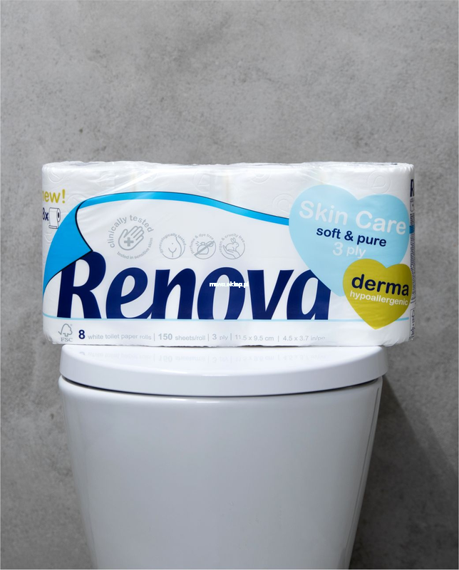 Papier toaletowy Renova Skin Care Derma Biały Hipoalergiczny 3-Warstwy 150 Listków 8 Rolek