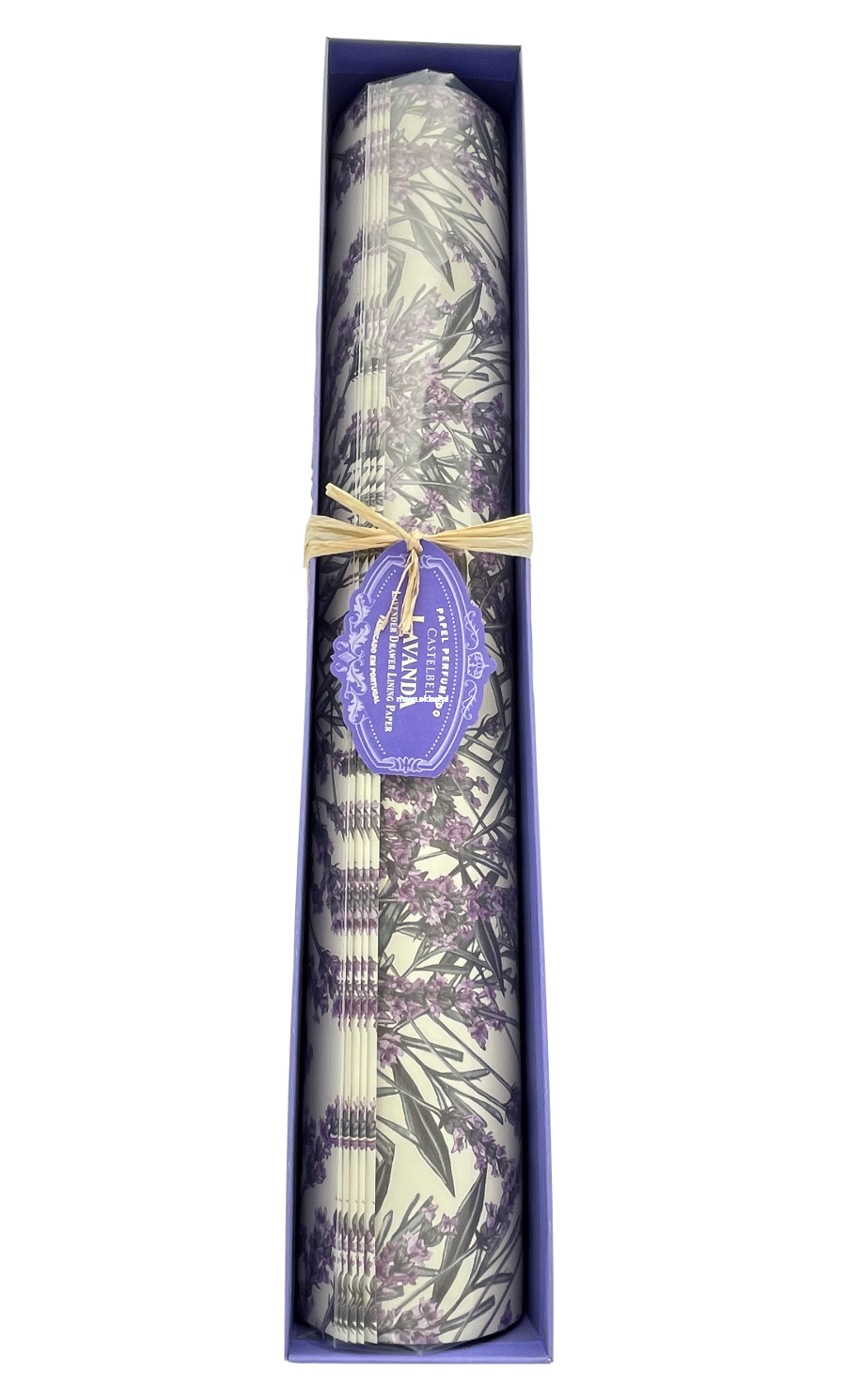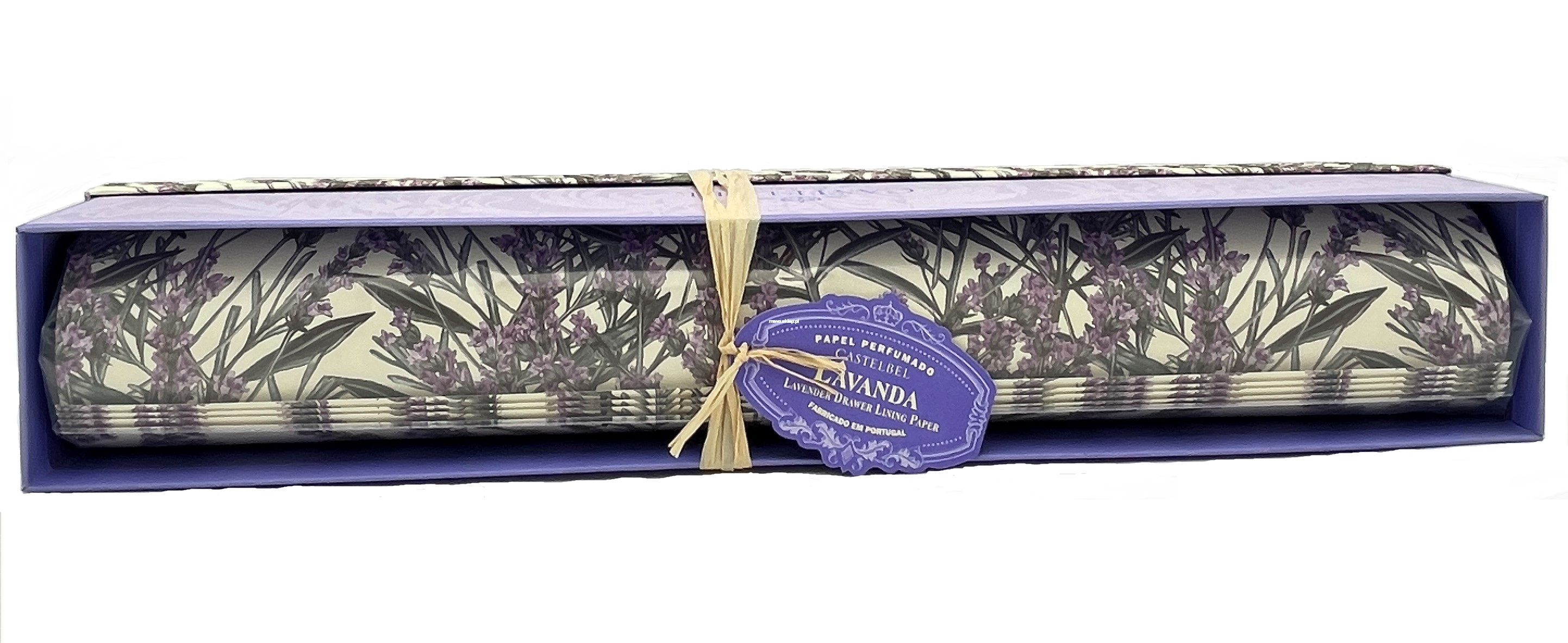 Wyjątkowy papier ozdobny do szuflad czy szaf. Niektórzy używają go również do okładania zeszytów, przygotowania zaproszeń na ślub czy pakowania drobnych prezentów. Jego wyjątkowość polega na delikatnym zapachu lawendy, który przeniknie do np. ubrań poskładanych w szufladzie. Perfumy nie są odparowywane na zadrukowanym papierze, tylko wymieszane razem ze specjalnym tuszem, dzięki czemu zapach jest trwalszy.