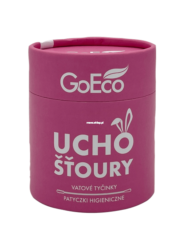 EKOLOGICZNE PATYCZKI kosmetyczne koloru różowego firmy GoEco pochodzą z recyklingu twardego kartonu oraz BAWEŁNY.