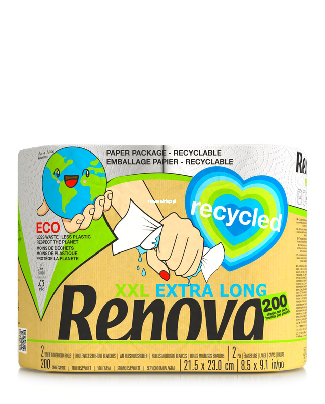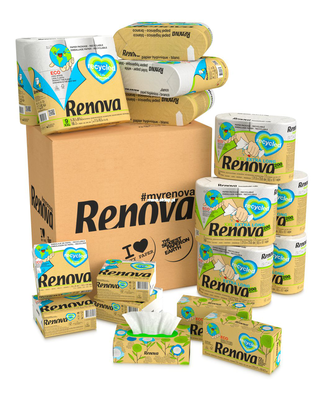 Zapakowane w papier: prostota i zaangażowanie w ochronę środowiska. Spełnij wszystkie domowe potrzeby, nie zdradzając przy tym swojego sumienia. 100% opakowania papierowe, 0% plastiku. Mały krok dla Ciebie, wielki krok dla przyszłej ludzkości. Renova Recycled to droga do pozytywnego działania na rzecz środowiska. Renova Recycled Pack — Ekonomiczna i ekologiczna.