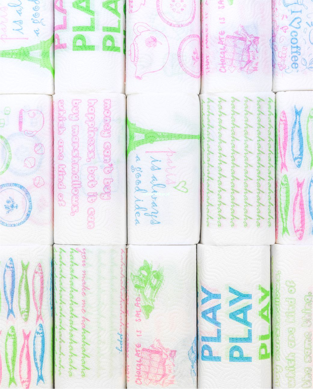 Ręczniki papierowe z wymieszanymi napisami, wzorami i rysunkami. To wszystko sprawia przyjemność i tworzy atmosferę zabawy. Rezultatem jest niesamowicie szeroka gama unikalnych kombinacji. Każda rolka znajdująca się w opakowaniu jest niepowtarzalna.
