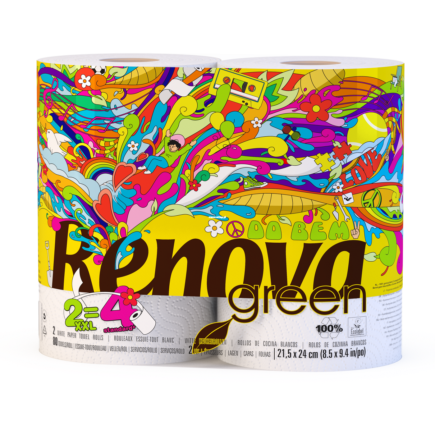 Wielozadaniowe ręczniki papierowe, wykonane z włókien pochodzących z recyklingu. Wyprodukowane bez użycia chloru i barwników, oszczędzając zasoby naturalne. Posiadają certyfikat oznakowania ekologicznego Unii Europejskiej.