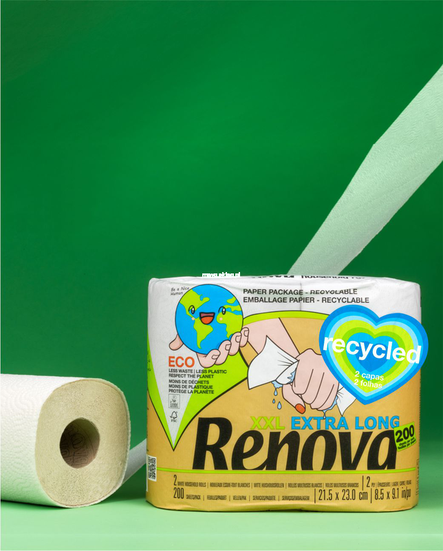Zapakowane w papier — papierowe ręczniki kuchenne: prostota i zaangażowanie w ochronę środowiska. Ręczniki papierowe Renova Extra XXL, dzięki nim unikniesz plastiku i oszczędzisz zasoby naturalne. Surowce użyte w tym produkcie, pochodzą z recyklingu.