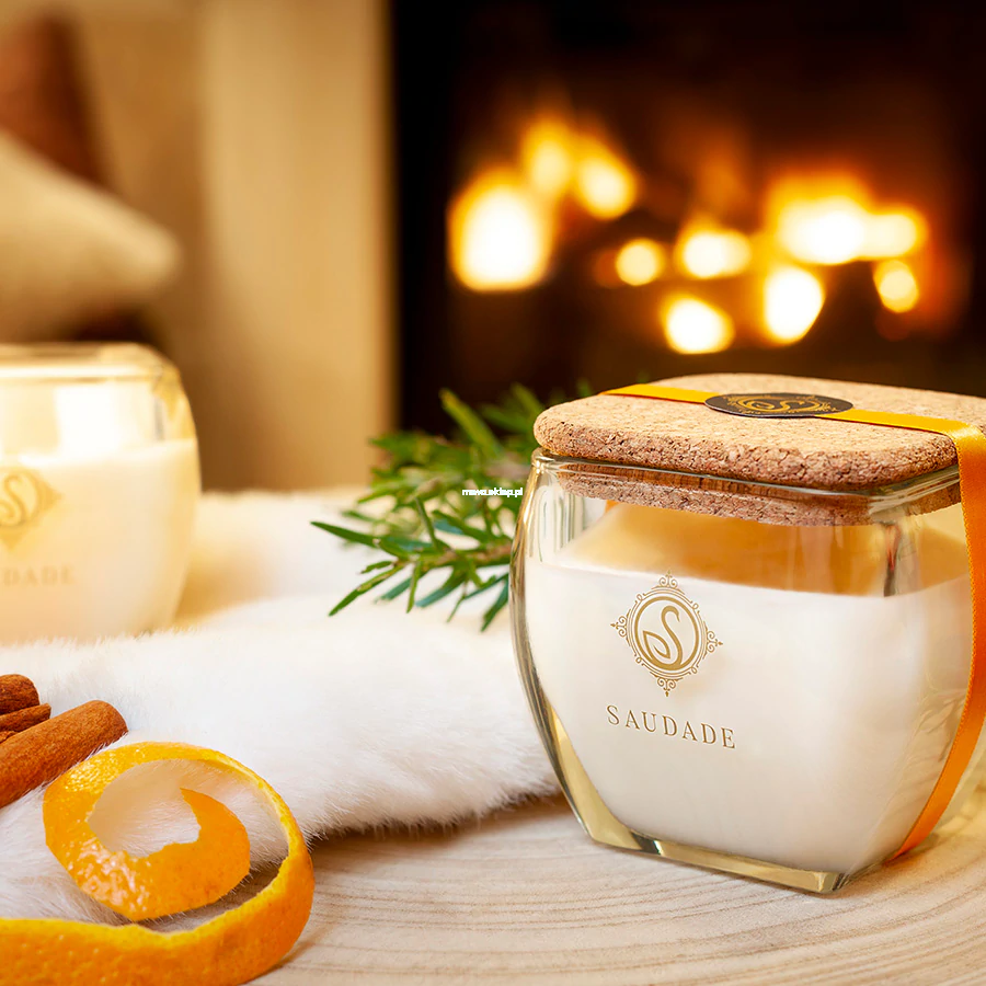 Świeca pachnąca olejkami eterycznymi, w ręcznie napełnianym, unikalnym szklanym pucharze, z ręcznie wykonaną pokrywką z portugalskiego korka. To prawdziwe dekoracyjny element w każdej przestrzeni. Ekskluzywne opakowanie z nadrukiem w złotym kolorze sprawia, że jest idealnym prezentem na każdą okazję. Ponadczasowe połączenie pomarańczy i cynamonu daje poczucie spokoju i komfortu.