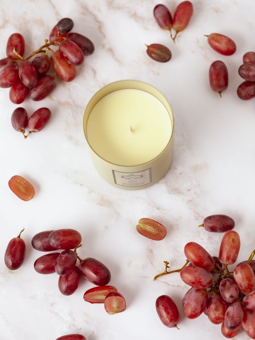 Ponadczasowy i naturalny aromat winogron - ta świeca przeniesie Cię w zmysłową podróż. Jest wzbogacona oliwą z oliwek i wykonana z wosku roślinnego.