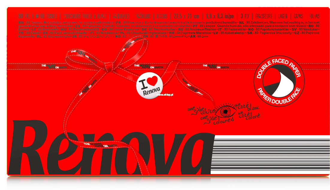 Bardzo miękkie chusteczki do twarzy, dwustronne: zewnętrzna — czerwona, wewnętrzna biała.