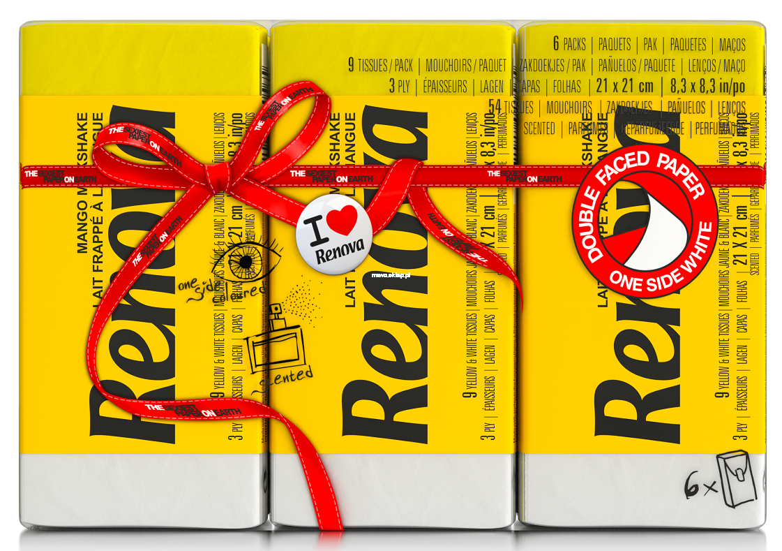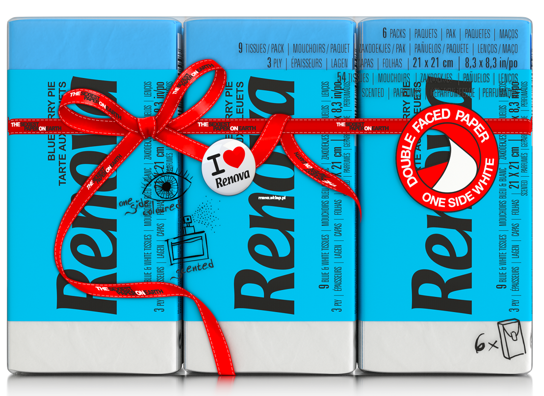 Każda chusteczka posiada dwa oblicza — od zewnętrznej strony kolor a od wewnętrznej biała. Zbudowane z trzech warstw papieru posiadają najrózniejsze zapachy. Pokaż swoje prawdziwe oblicze.