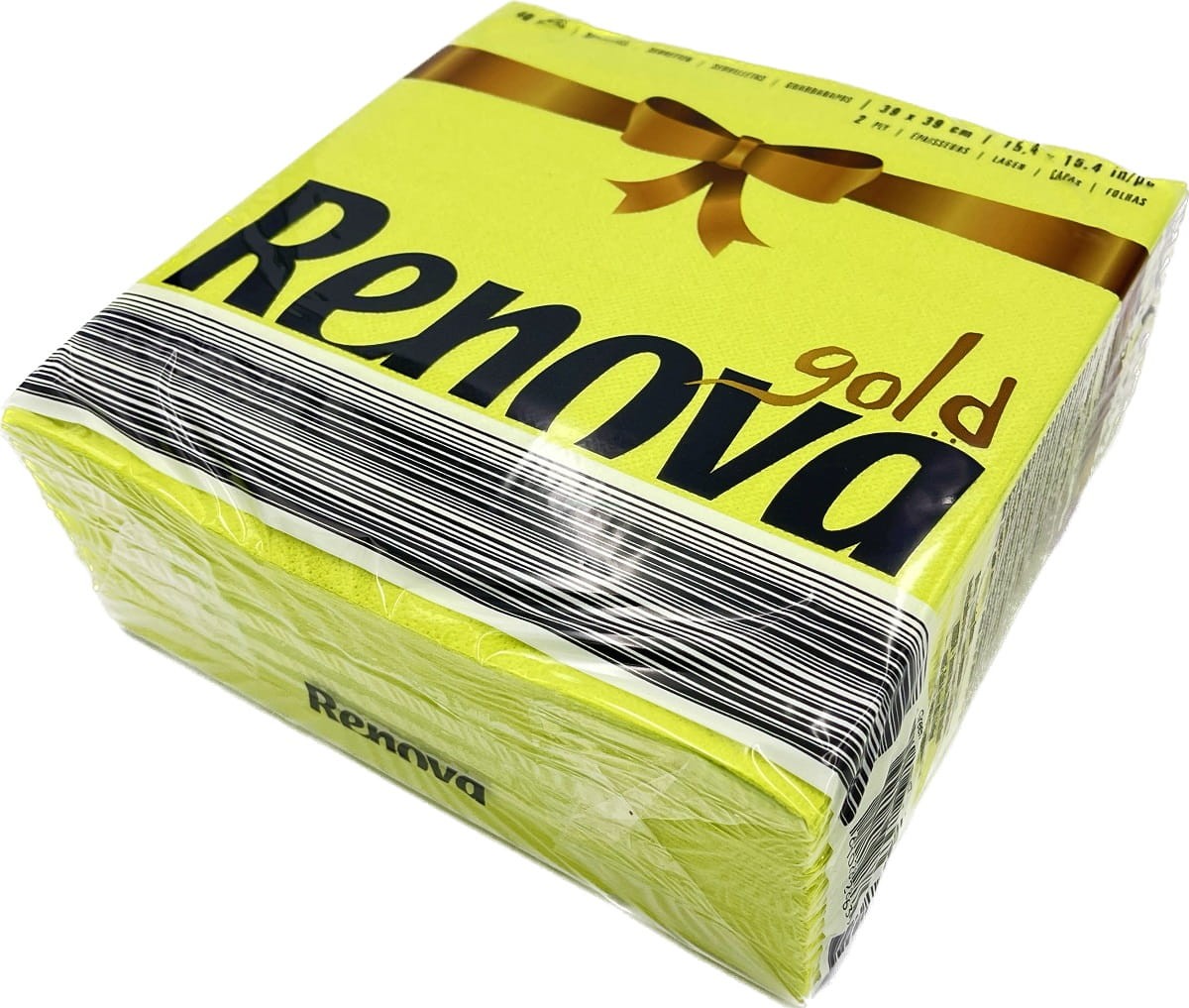 Taniej w zestawie!Wysokiej jakości żółte serwetki papierowe z serii Renova GOLD, specjalna tekstura, extra rozmiar, wyjątkowo miękkie i chłonne.