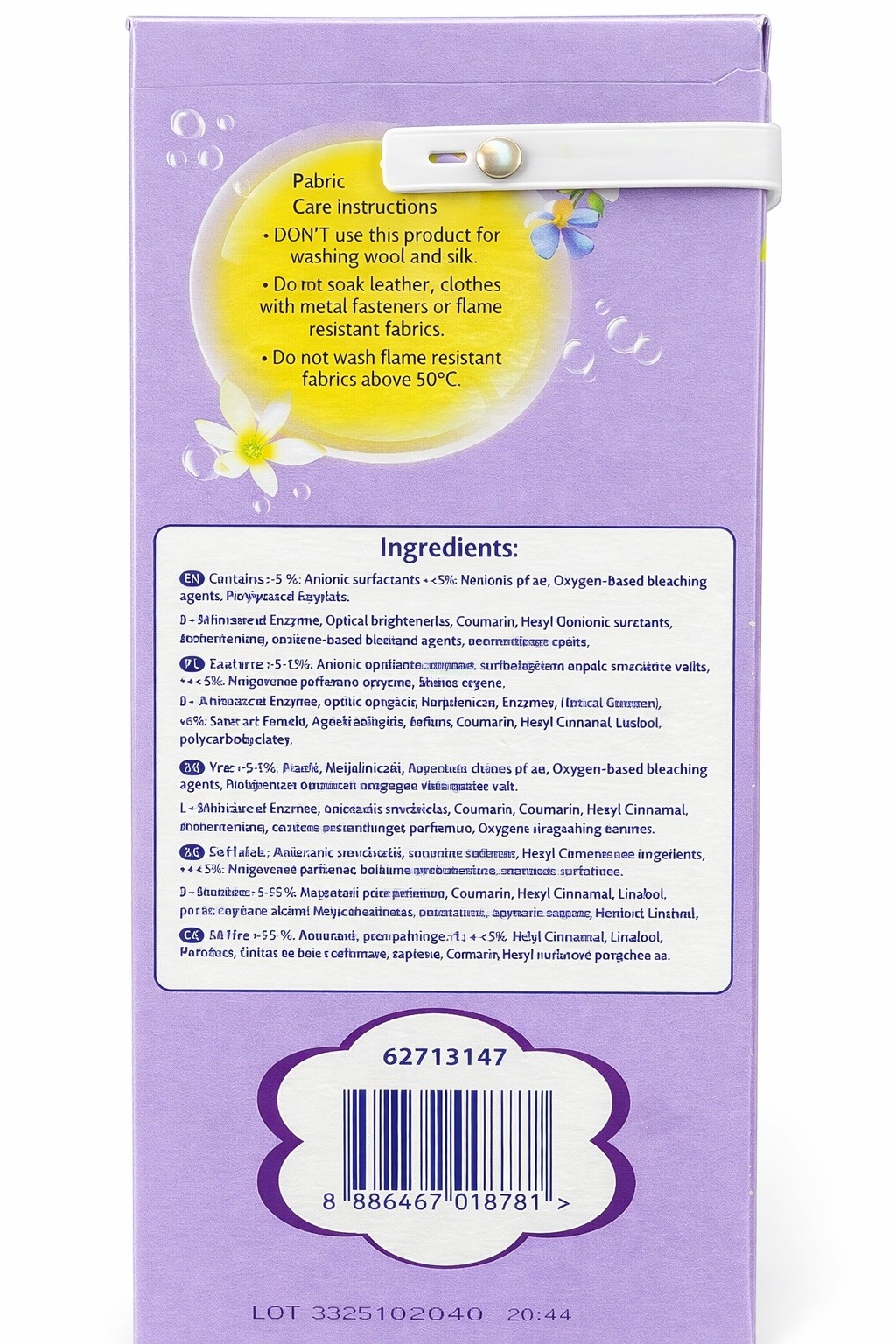 Surf Fresh Lavender & Mint to doskonałe połączenie skuteczności i przyjemności użytkowania. Dzięki starannie dobranej kompozycji zapachowej ubrania nie tylko są czyste, ale również pachną świeżością przez długi czas. Produkt sprawdzi się w codziennym użytkowaniu, zapewniając wysoką jakość prania bez konieczności stosowania dodatkowych środków zapachowych.
