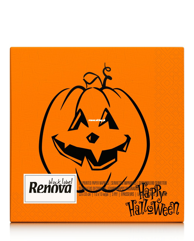 - Serwetki stołowe Renova Dynia 20 szt. – drukowane serwetki 33 × 33 cm, z motywem dyni, wykonane z użyciem nietoksycznych farb wodnych.